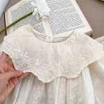 Este hermoso vestido es la elección perfecta para la primavera. Confeccionado completamente en broderie, ofrece un diseño delicado y elegante que realza la ternura de tu bebé. Su estilo vintage con detalles bordados le da un toque especial, mientras que su tela ligera y fresca garantiza comodidad en todo momento.