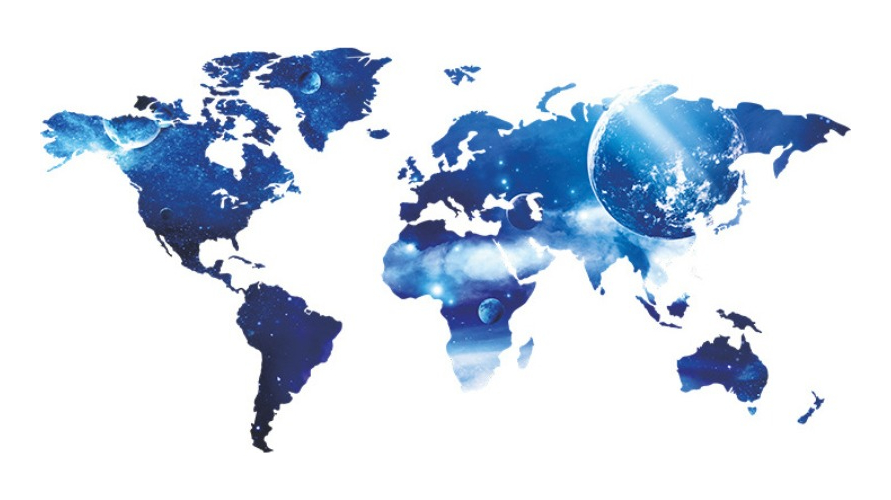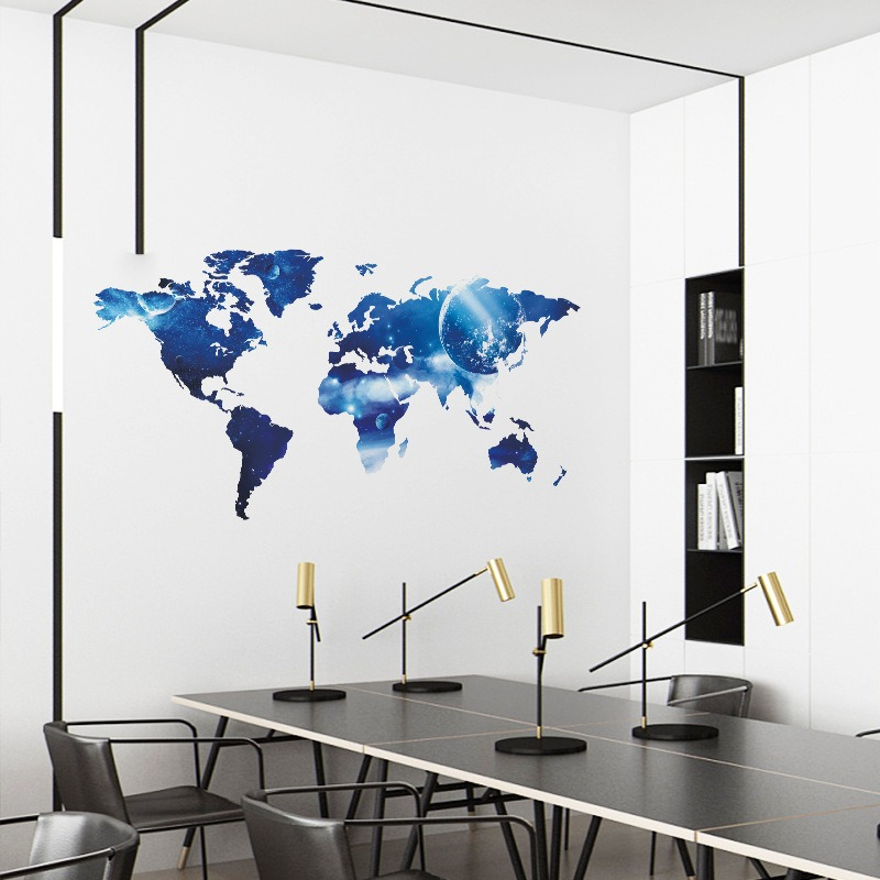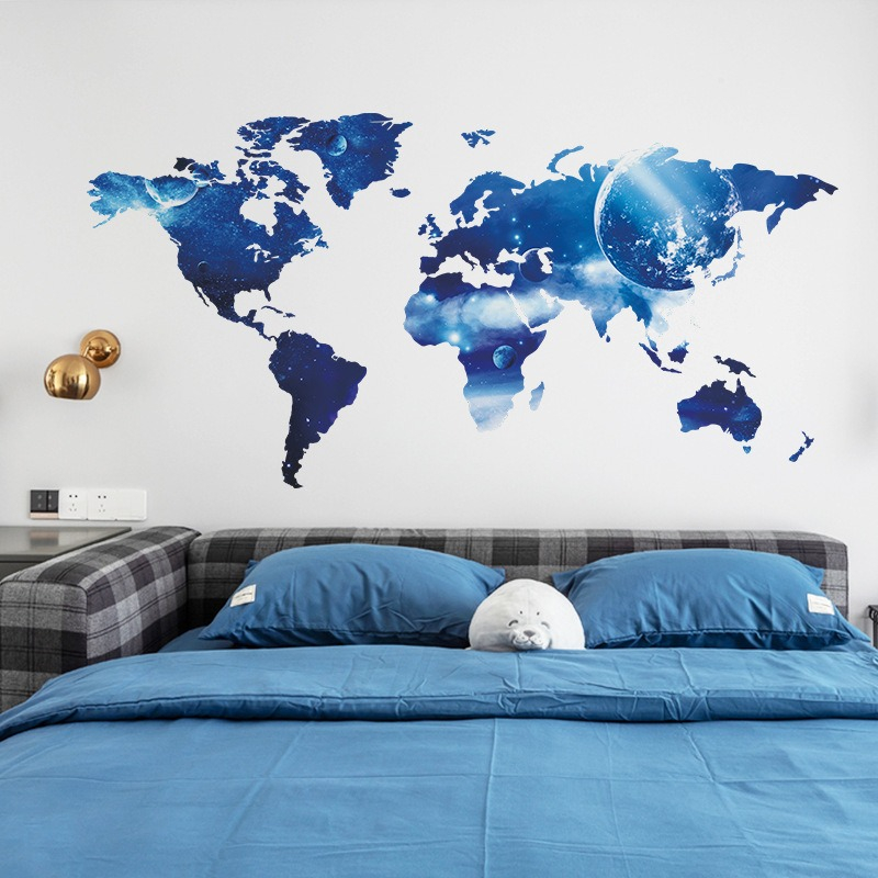Vinilo de mapamundi Universo para pared, ideal para living, dormitorio, oficina, etc. Fácil de colocar.