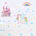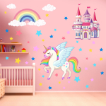 Vinilo Adhesivo Decorativo Infantil – Unicornio Mágico con Castillo, Arcoíris y Estrellas