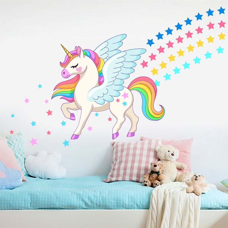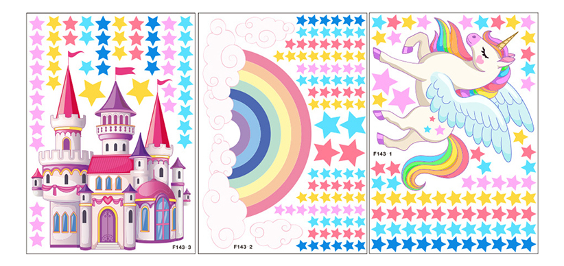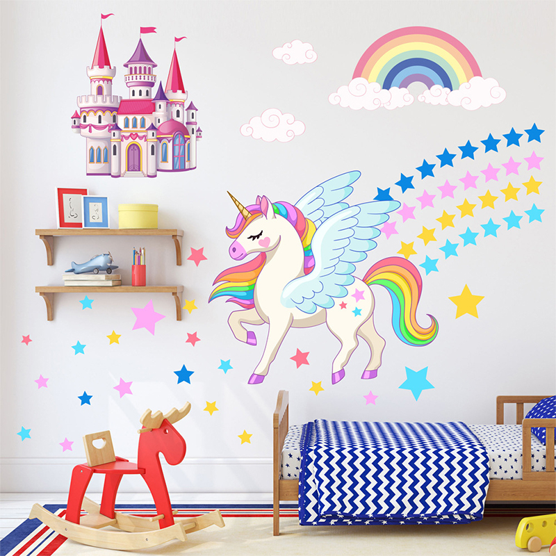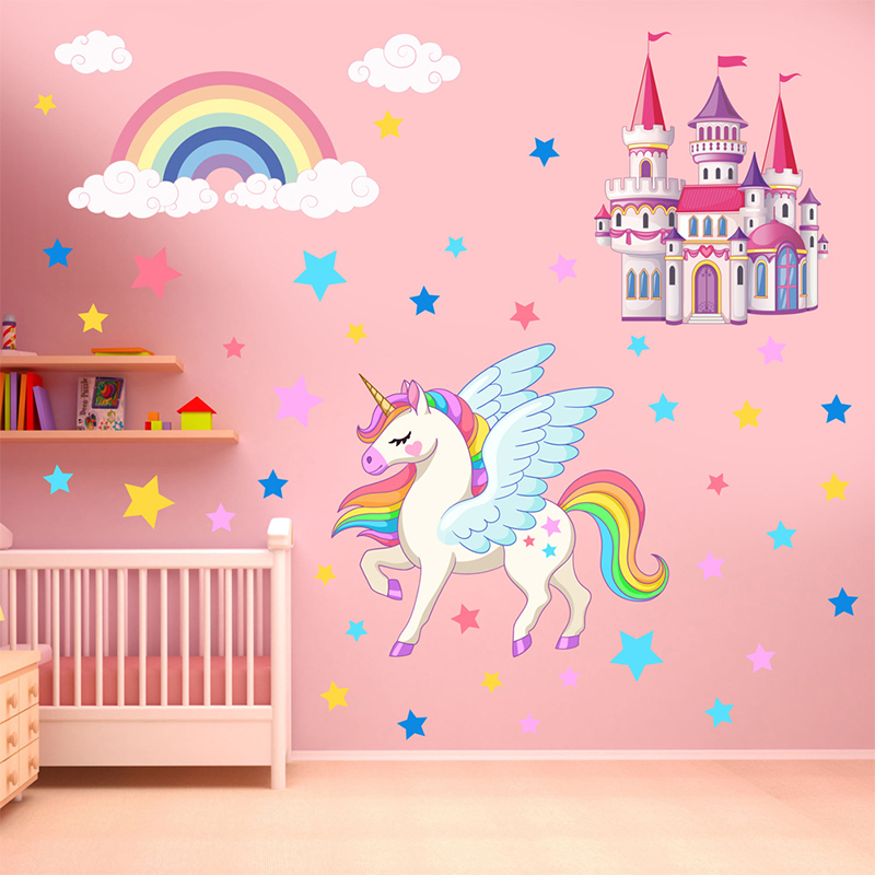 Vinilo Adhesivo Unicornio Magico Castillo Arcoiris Estrellas