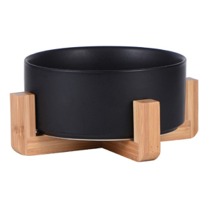 Comedero Bebedero Mascota Elevado Ceramica Base Madera