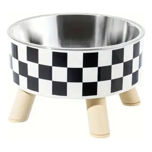 Comedero Bebedero Mascota Elevado Ceramica Base Madera