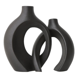 Florero Delicado Moderno Circular Cerámica Arenada Doble