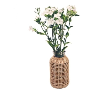 Florero Frasco Bollón Decorativo De Vidrio Con Mimbre Chico