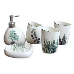 Set X5 Piezas Accesorios De Tocador Para Baño De Ceramica