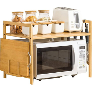 Estante Organizador De Bambu Para Microondas Cocina Doble