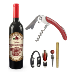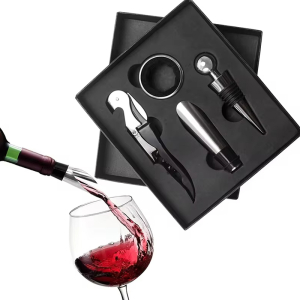 Set Para Vinos 4 Piezas De Metal Estuche Sacacorchos Cocina