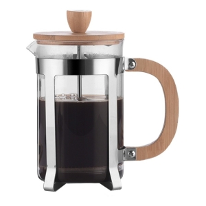 Cafetera Manual Embolo Prensa Francesa Vidrio Y Madera 600ml