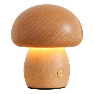 Lampara Veladora Recargable Para Mesa De Luz En Madera Hongo