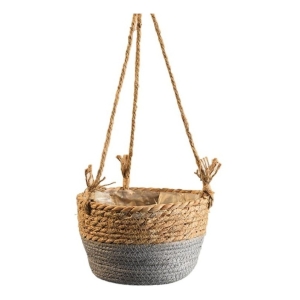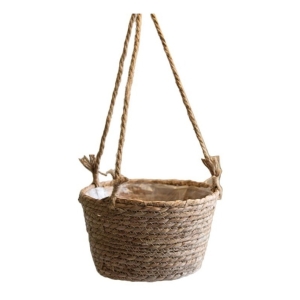 Cesto Porta Maceta Colgante En Ratan Tejido Forrado Chico