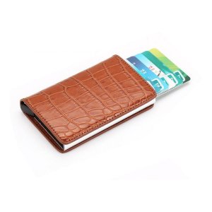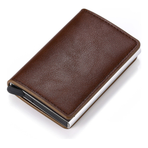 Porta Tarjetas De Metal Rfid Cuero Sintetico