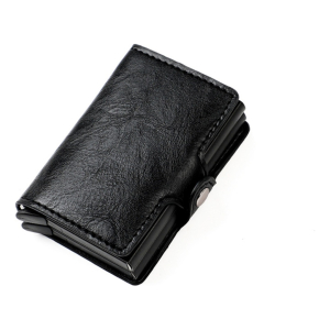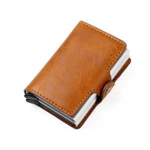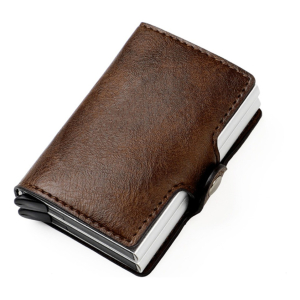 Porta Tarjetas De Metal Rfid Cuero Sintetico Doble