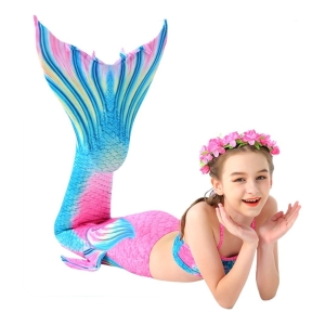 Malla Niña Bikini Sirena Con Cola Y Tiara – Celeste Y Rosa